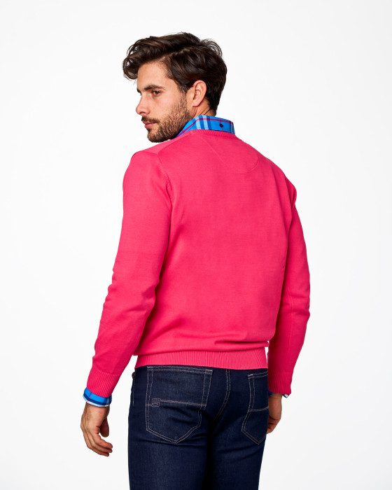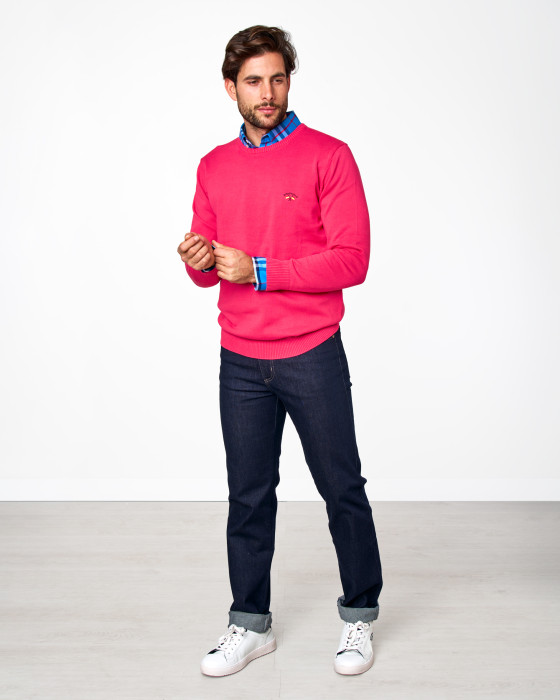 Este jersey de cuello caja es una prenda básica y elegante, confeccionado en punto fino (galga 12) que aporta suavidad y ligereza. Perfecto para llevar sobre camisa o camiseta, con diseño clásico y logo bordado, ideal para oficina o looks casual.