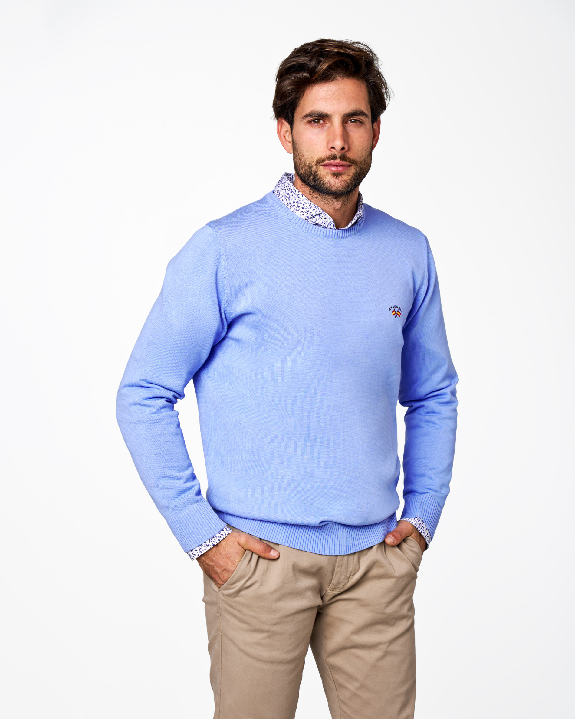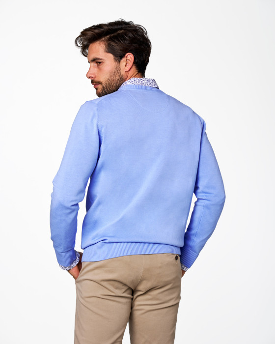 Este jersey de cuello caja es una prenda básica y elegante, confeccionado en punto fino (galga 12) que aporta suavidad y ligereza. Perfecto para llevar sobre camisa o camiseta, con diseño clásico y logo bordado, ideal para oficina o looks casual.