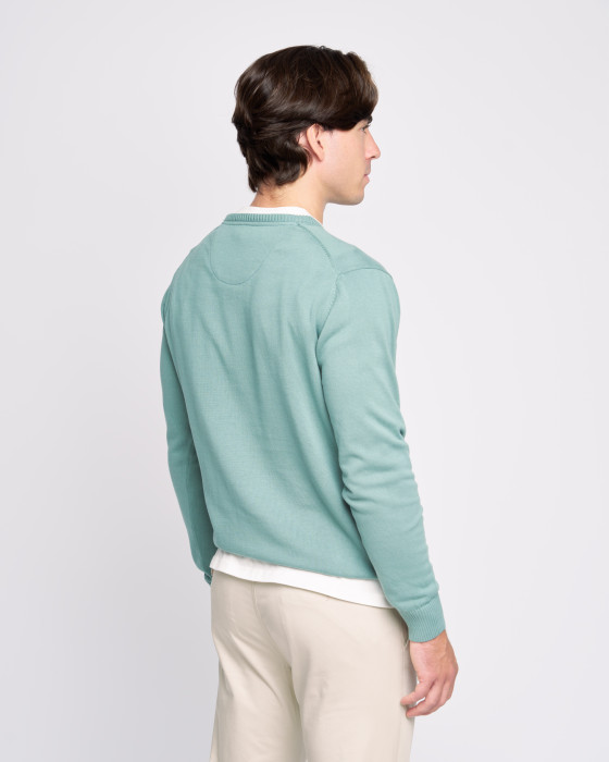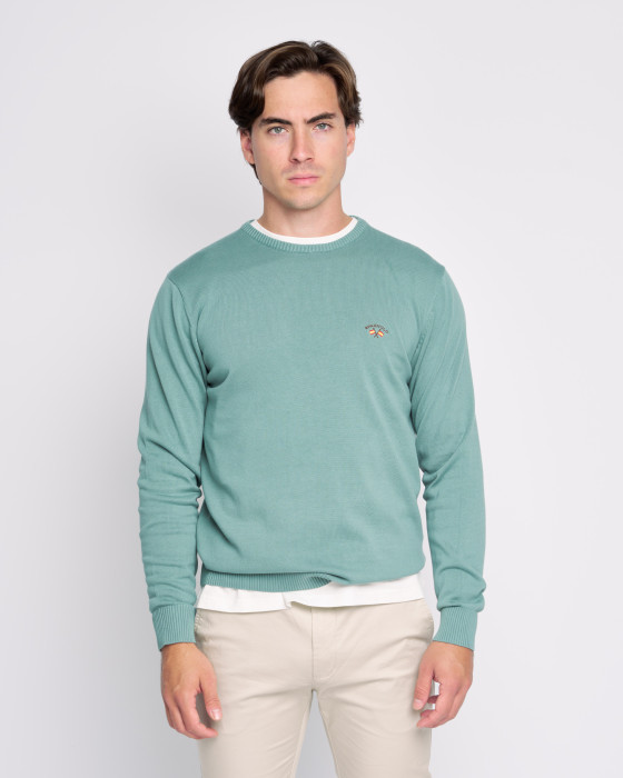 Este jersey de cuello caja es una prenda básica y elegante, confeccionado en punto fino (galga 12) que aporta suavidad y ligereza. Perfecto para llevar sobre camisa o camiseta, con diseño clásico y logo bordado, ideal para oficina o looks casual.
