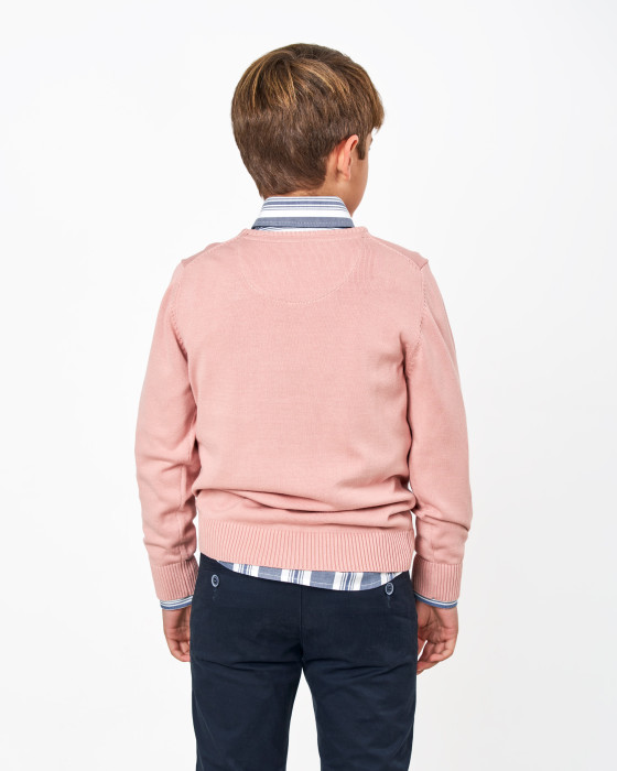 Suave jersey infantil de diseño contemporáneo. El pequeño logo de banderas en el pecho le da un toque distintivo y elegante. Confeccionado en 100% algodón, es la prenda perfecta para combinar con camisas o llevar solo. Máximo confort asegurado.