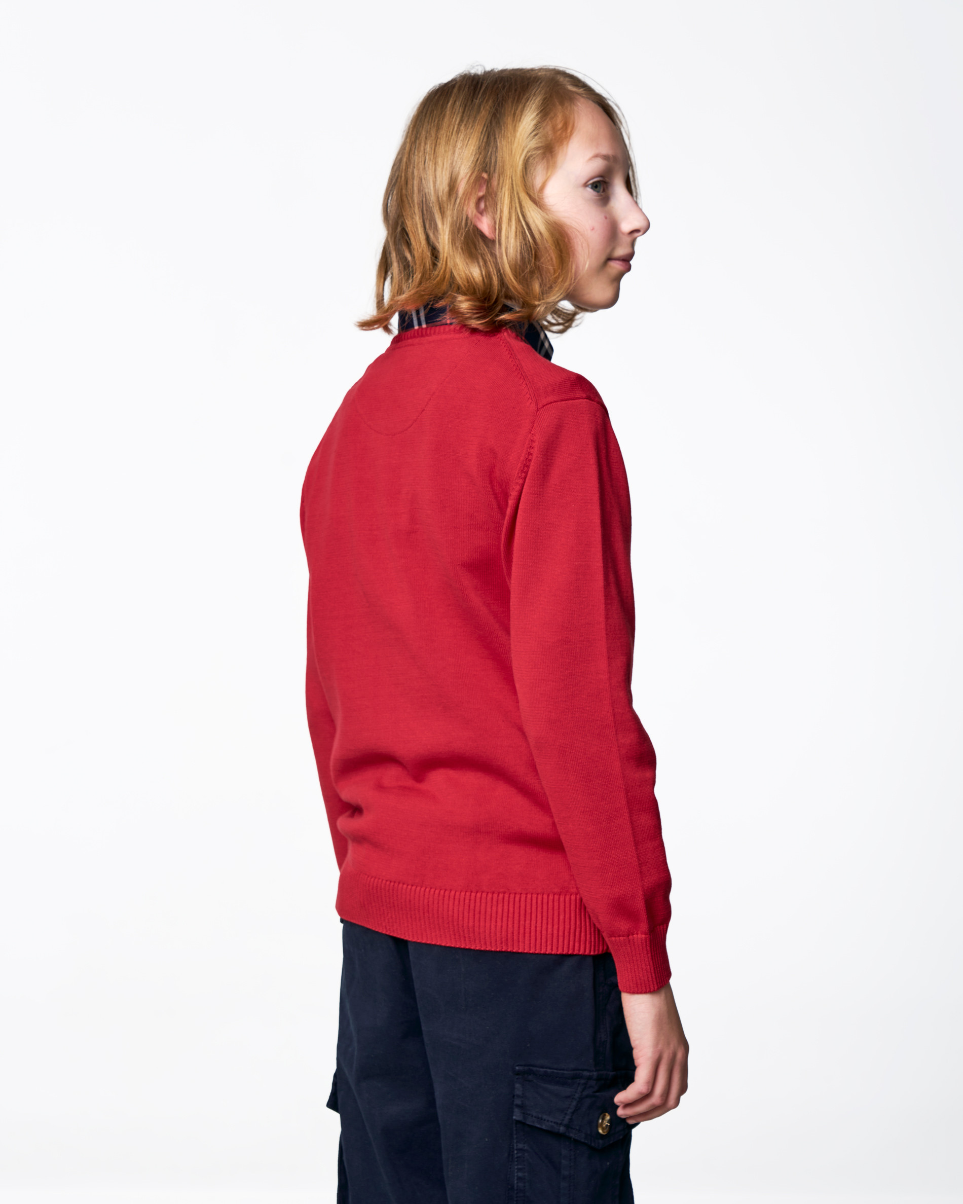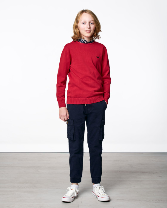 Suave jersey infantil de diseño contemporáneo. El pequeño logo de banderas en el pecho le da un toque distintivo y elegante. Confeccionado en 100% algodón, es la prenda perfecta para combinar con camisas o llevar solo. Máximo confort asegurado.