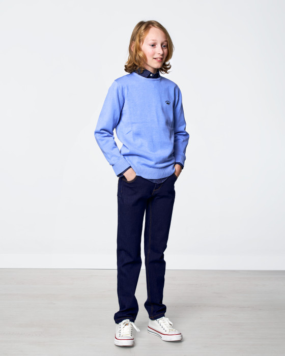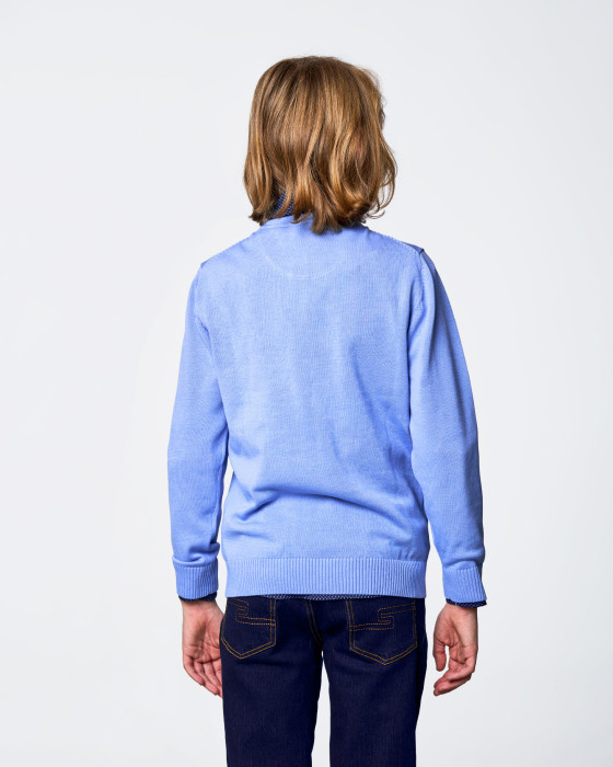 Suave jersey infantil de diseño contemporáneo. El pequeño logo de banderas en el pecho le da un toque distintivo y elegante. Confeccionado en 100% algodón, es la prenda perfecta para combinar con camisas o llevar solo. Máximo confort asegurado.
