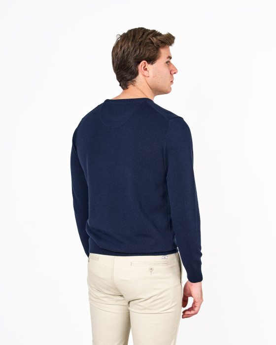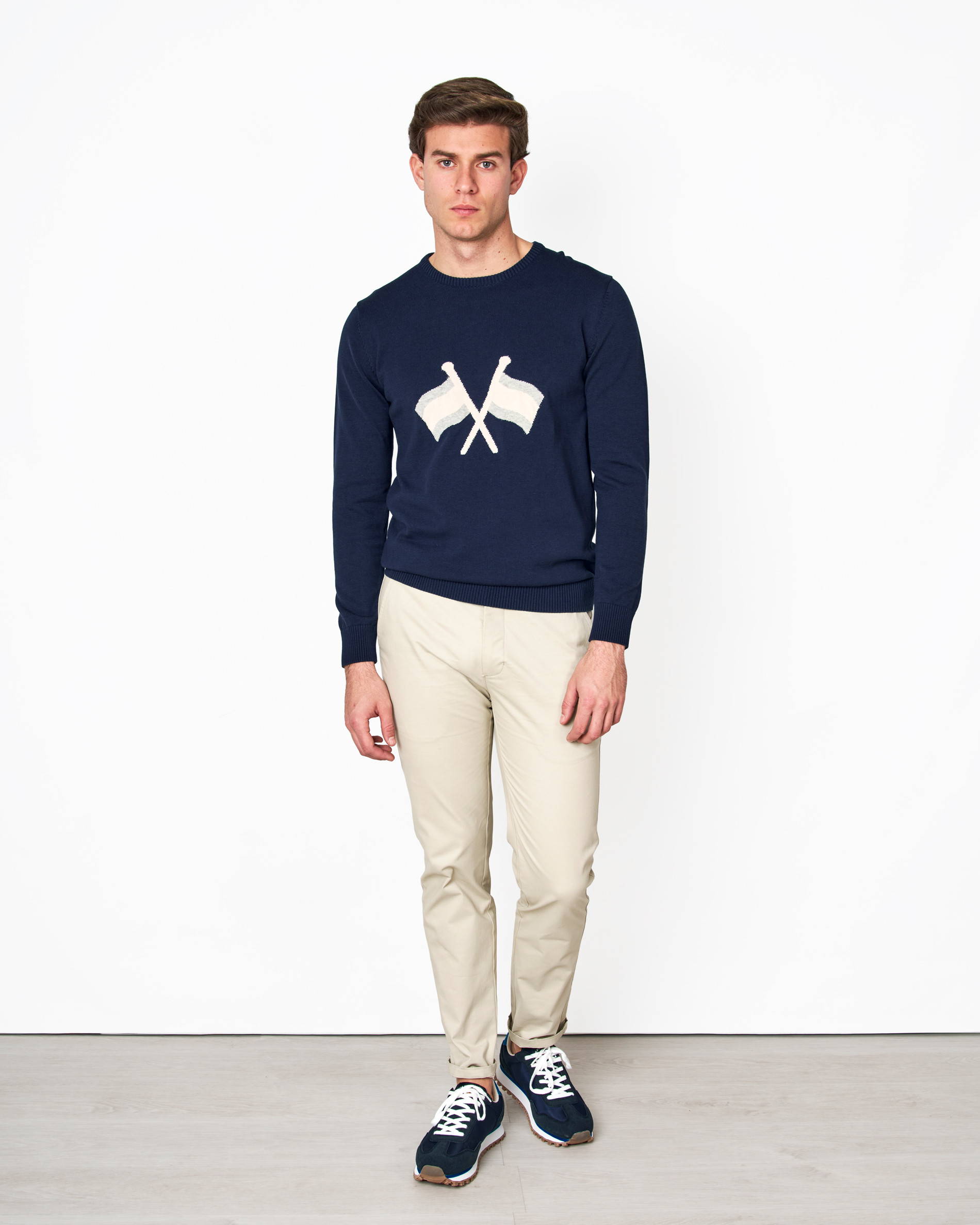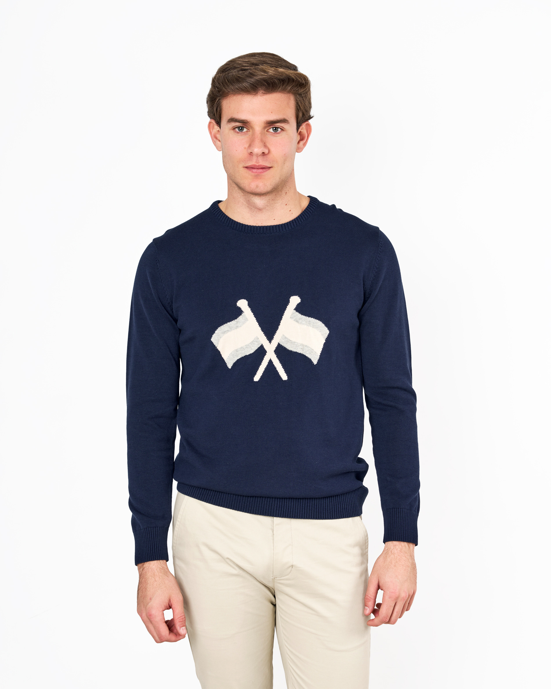 Es la pieza perfecta para un look distintivo. Suave y confortable, presenta un cuello redondo clásico y el motivo de bandera corporativa en el pecho que le da un toque náutico y exclusivo. Ideal para un estilo casual con personalidad.