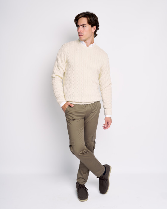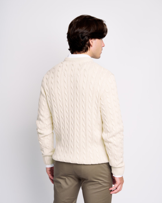 Es un básico esencial para el invierno. Confeccionado en 100% algodón, presenta una estructura de punto trenzado que aporta un extra de cuerpo y calidez. Ideal para combinar a capas con camisas o llevar bajo americanas. Confort, textura y estilo para el frío.