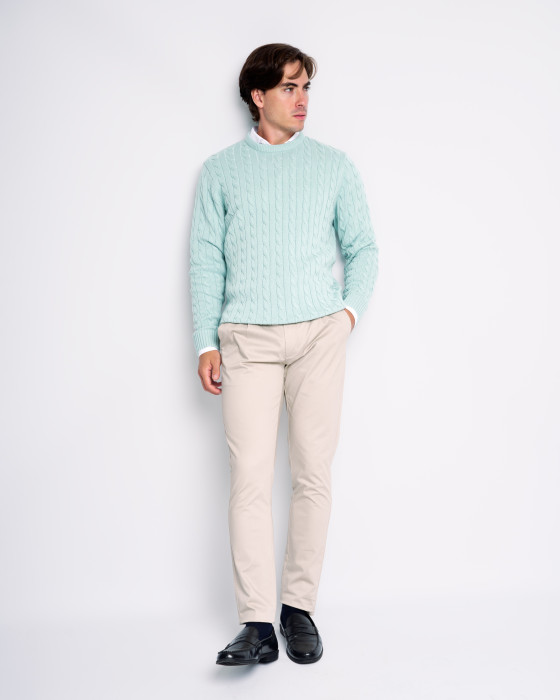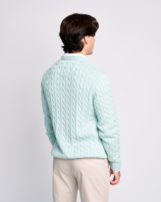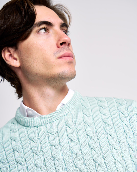 Es un básico esencial para el invierno. Confeccionado en 100% algodón, presenta una estructura de punto trenzado que aporta un extra de cuerpo y calidez. Ideal para combinar a capas con camisas o llevar bajo americanas. Confort, textura y estilo para el frío.