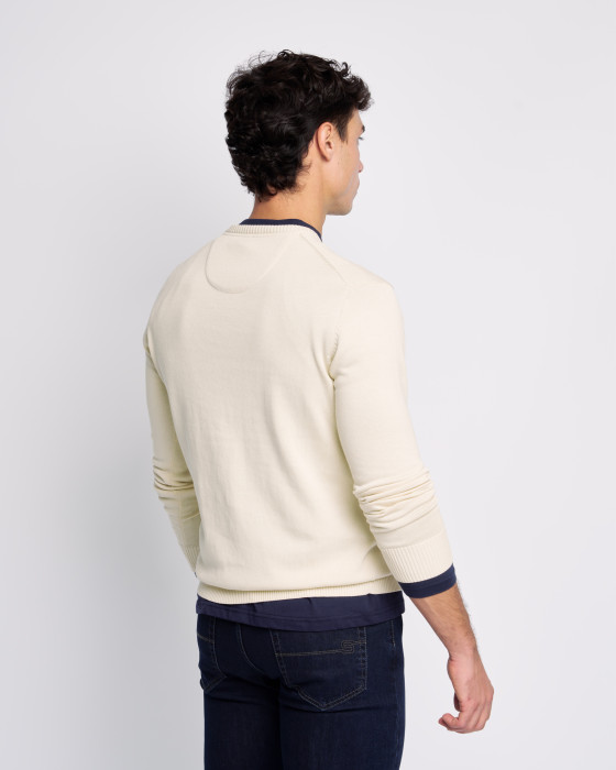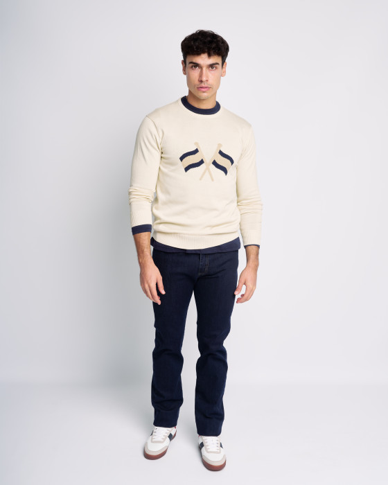 Es la pieza perfecta para un look distintivo. Suave y confortable, presenta un cuello redondo clásico y el motivo de bandera corporativa en el pecho que le da un toque náutico y exclusivo. Ideal para un estilo casual con personalidad.