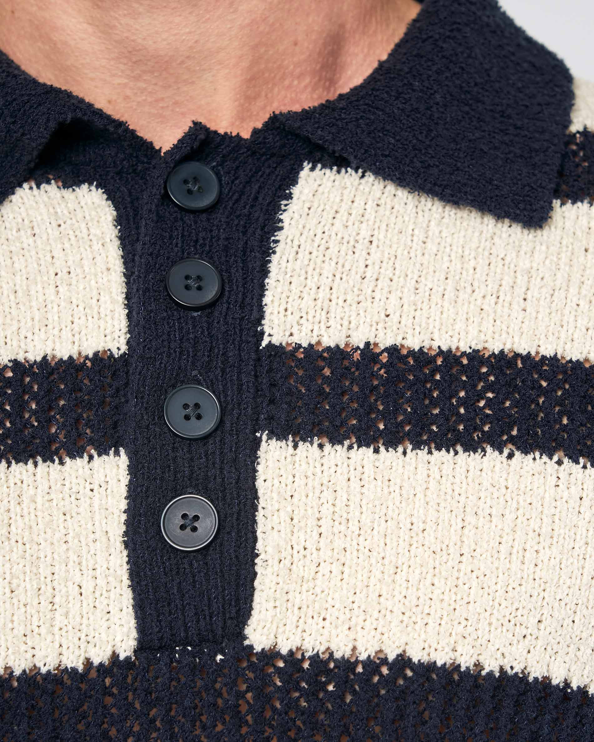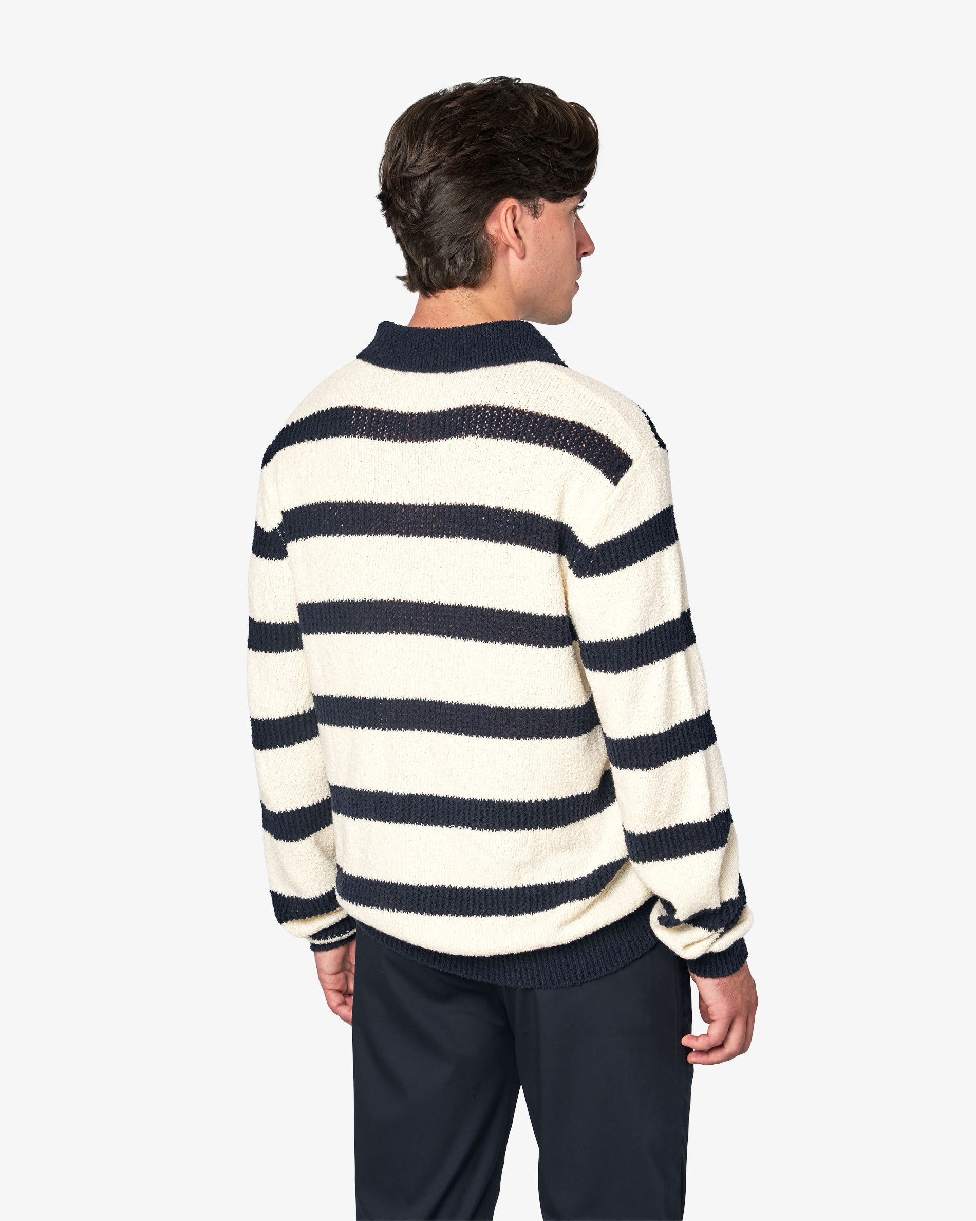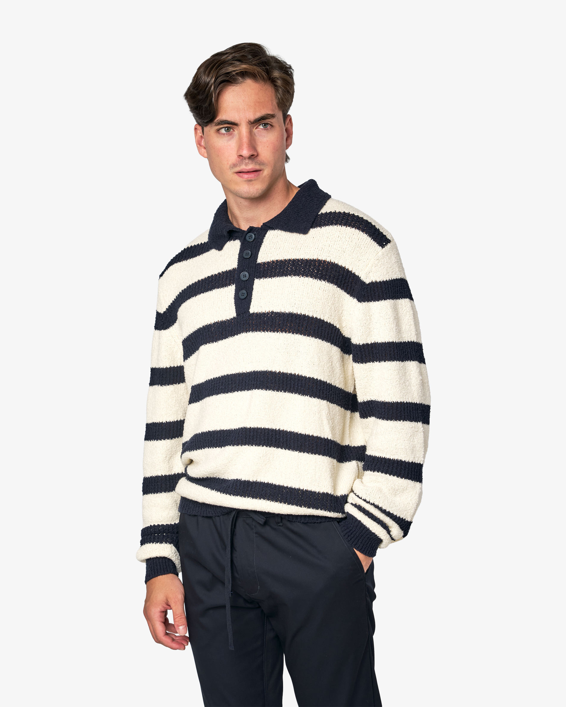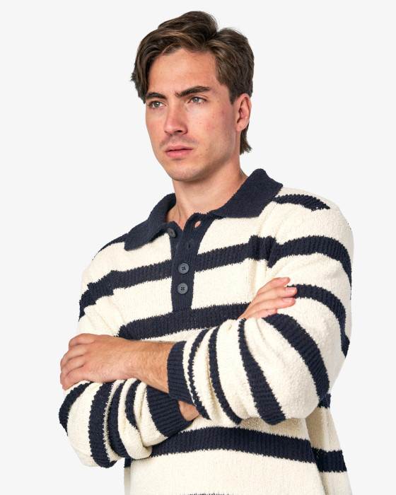 JERSEY POLO RAYAS CREMA SUAVE y AZUL