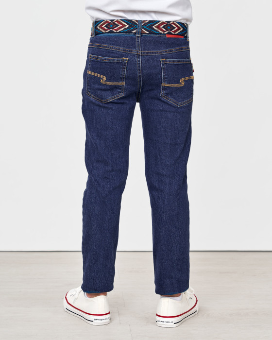Este pantalón vaquero (denim) es el básico esencial para el día a día de tu hijo, combinando un look clásico con una comodidad moderna.Confeccionado con un tejido de alta calidad con un toque de elastano, garantiza la máxima libertad de movimiento y un ajuste perfecto, ideal para el juego y la actividad diaria. El corte es recto y estilizado.Un detalle distintivo son los bordados en los bolsillos