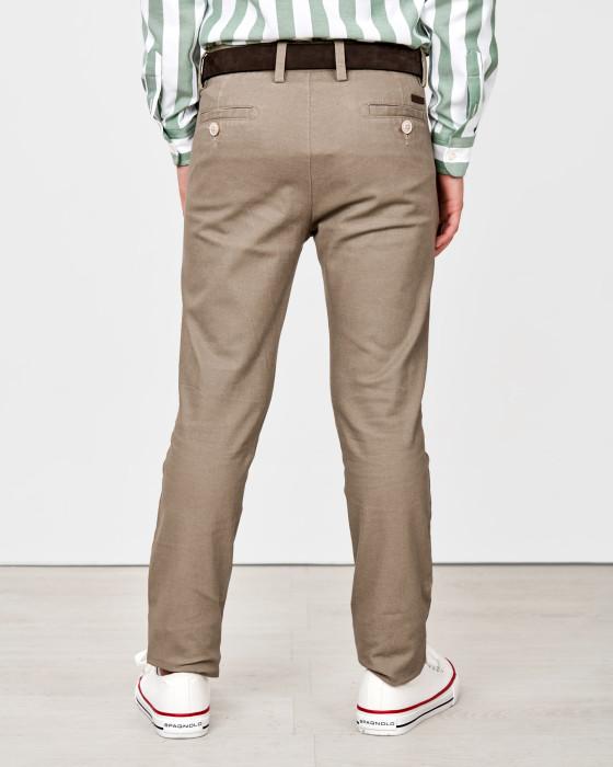 Pantalón chino para niños que fusiona comodidad y elegancia. Confeccionado en gabardina con elastano, ofrece flexibilidad y un corte moderno, resultando ideal para looks casuales y semi-formales con camisa o polo.