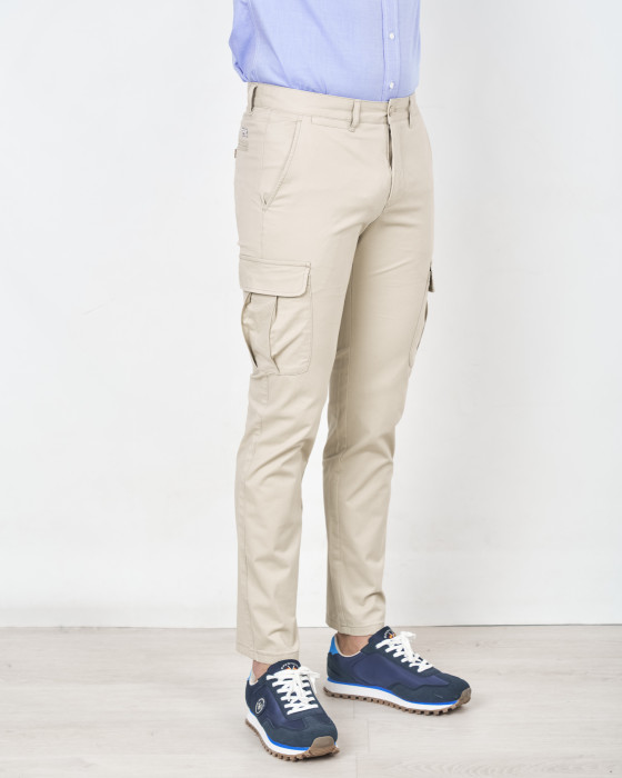PANTALON CARGO SLIM GABARDINA LAVADA AZUL NOCHE