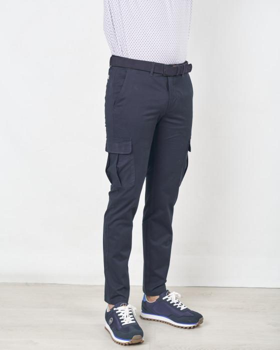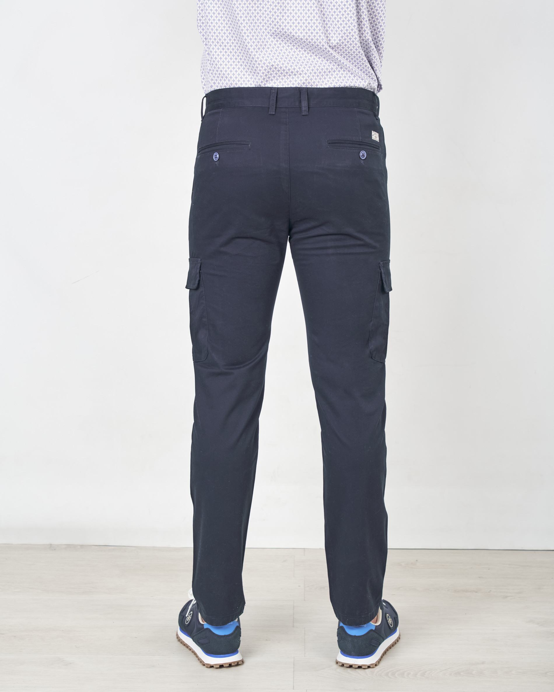PANTALON CARGO SLIM GABARDINA LAVADA 8688 AZUL MARINO