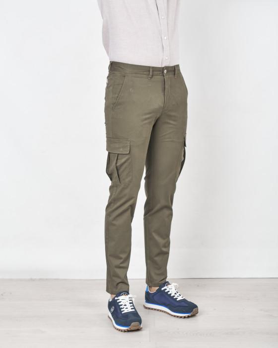PANTALON CARGO SLIM GABARDINA LAVADA 8688 VERDE OSCURO