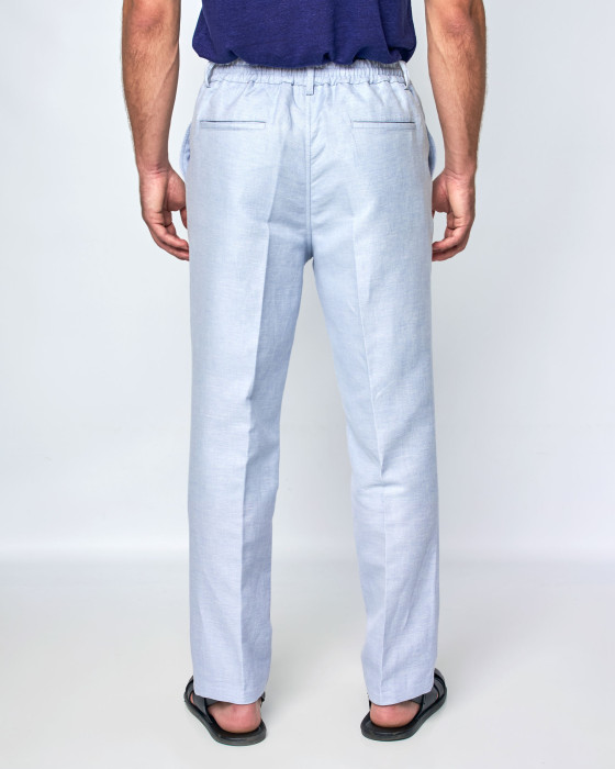 PANTALONES LINO CORDONES CELESTE