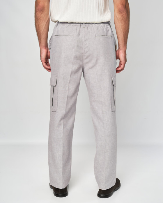 Pantalón cargo Spagnolo confeccionado en lino de alta calidad. Tejido ligero y transpirable ideal para los meses cálidos. Cintura confortable con cordones ajustables. Bolsillos laterales tipo cargo que aportan funcionalidad. Corte recto que combina comodidad y elegancia. Perfecto para un look casual refinado con sello Spagnolo.