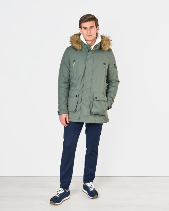 Esta parka de estilo Cortes es la aliada perfecta contra el frío. Confeccionada en tejido técnico 100% poliéster, ofrece calidez y protección duradera. Destaca por su capucha con ribete de pelo sintético, que aporta un toque de tendencia y abrigo adicional. Su diseño funcional incluye múltiples bolsillos, como el de cremallera en la manga, y un ajuste que la hace ideal para el invierno.