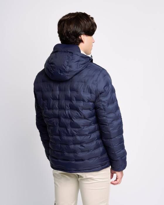Máxima versatilidad con esta parka acolchada y reversible. Confeccionada en tejido técnico de 100% poliéster, ofrece protección y aislamiento ligero. Su diseño reversible te permite cambiar de look: un lado liso y sobrio y el otro con un acolchado moderno y texturizado. Incorpora capucha con visera para mayor protección y cierre de cremallera. Es una prenda funcional e ideal para el entretiempo.