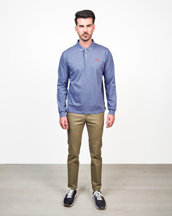 "Descubre nuestro polo básico melange, la prenda esencial para tu armario. Confeccionado en 100% algodón piqué de alta calidad, este polo de manga larga ofrece confort y estilo para cualquier ocasión. Su diseño atemporal y el detalle del logo bordado añaden un toque distintivo. Disponible en varias tallas. ¡Hazte con el tuyo!"