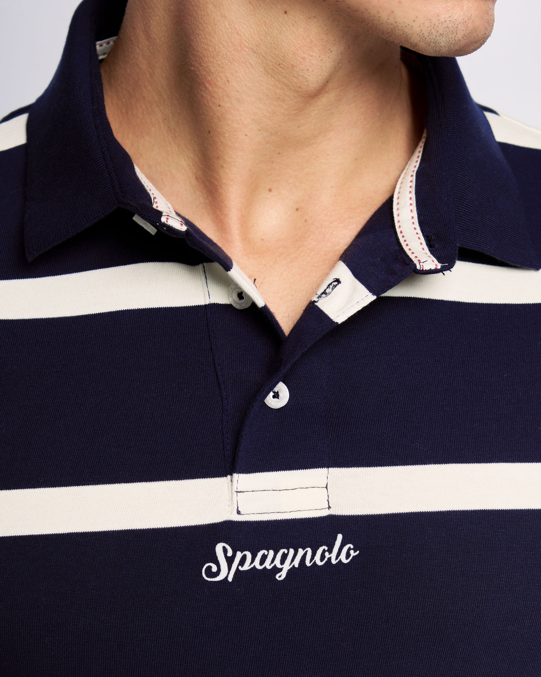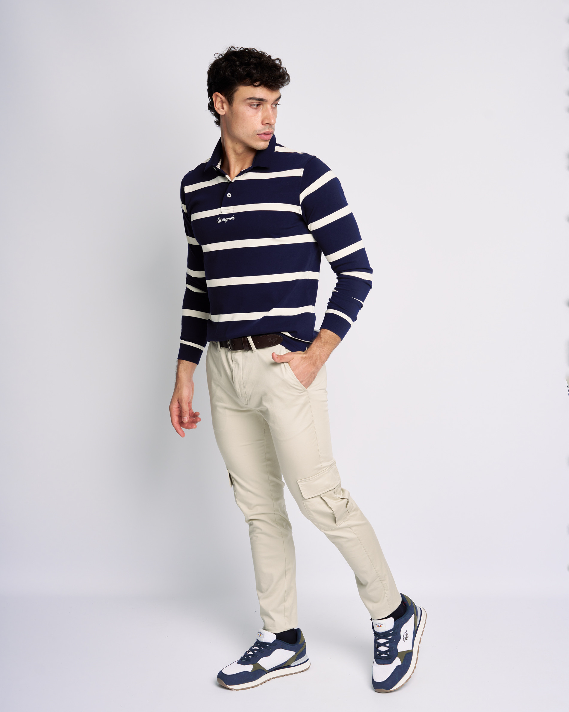 Este polo de manga larga es una pieza clave de estilo casual y atemporal. Confeccionado en punto grueso a rayas de 100% algodón, te ofrece una gran comodidad y un tacto suave, ideal para el entretiempo y el invierno. Su diseño presenta rayas horizontales y un clásico cuello de polo con tapeta de botones. Destaca el bordado del logo de la marca en la tapeta. Un polo versátil que combina fácilmente