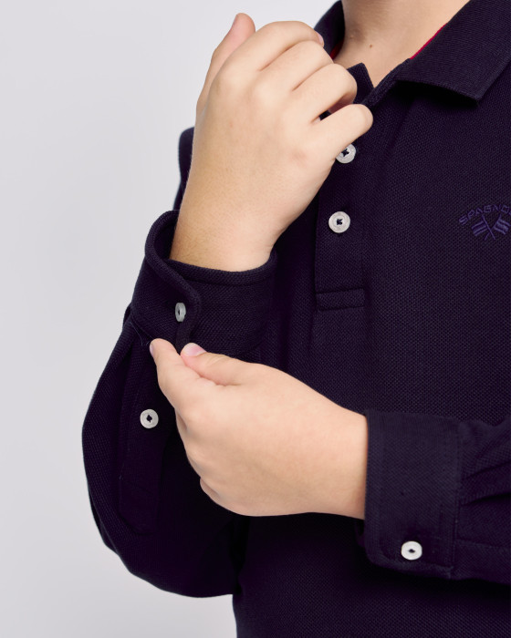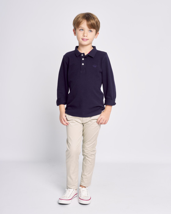Polo de manga larga atemporal para los más pequeños. Confeccionado en $100\%$ algodón de punto piqué, asegurando suavidad y comodidad. Un diseño clásico de cuello y botones. Versátil y fácil de combinar, es un básico esencial para su día a día.