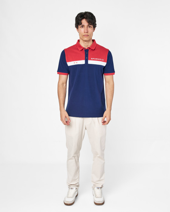 Polo Spagnolo de manga corta en color azul marino con diseño bicolor.