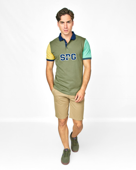 Polo Spagnolo de manga corta con diseño multicolor moderno y llamativo.