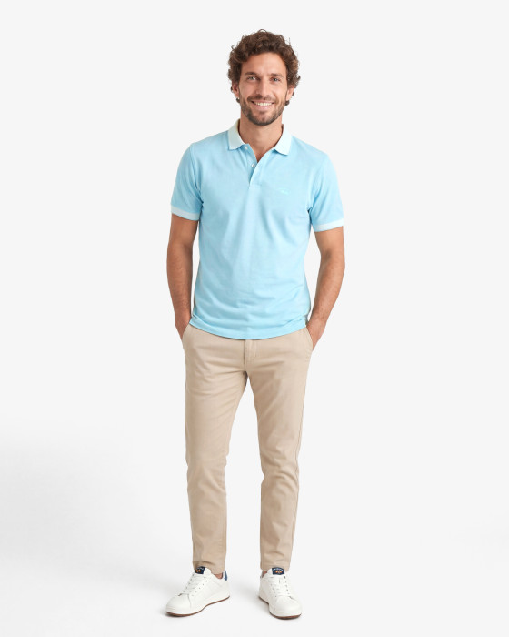 Polo piqué melange de hombre con diseño liso y acabado moderno. Confeccionado en algodón que aporta suavidad, comodidad y transpirabilidad. Su efecto jaspeado añade un toque actual y diferenciador. Ideal para looks casuales o más elegantes. Disponible en varios colores versátiles para el día a día y fácil de combinar.