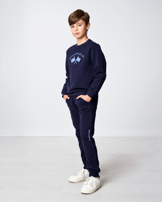 Set de sudadera y pantalón de chándal para niños que asegura máxima comodidad y estilo casual. Confeccionado en 100% algodón, ofrece transpirabilidad y un ajuste cómodo, ideal para el juego y actividades deportivas.