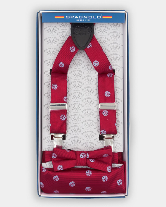 Set infantil de tirantes , pajarita y pañuelo de bolsillo con estampado de lunares.