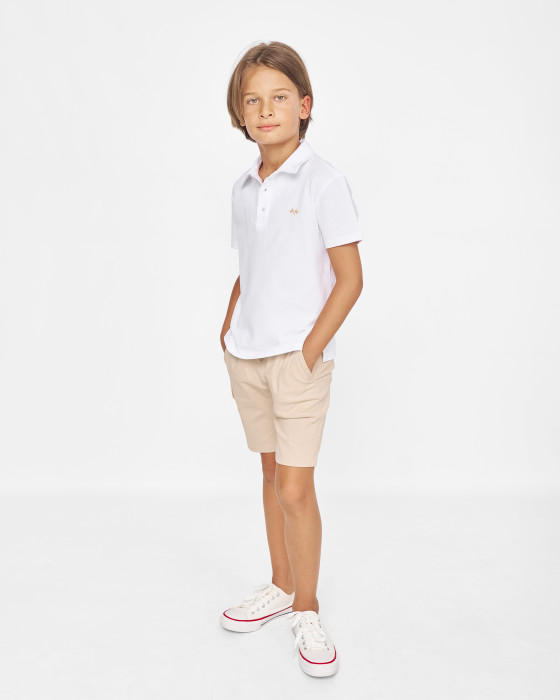 CONJUNTO POLO Y BERMUDA BLANCO Y CAMEL