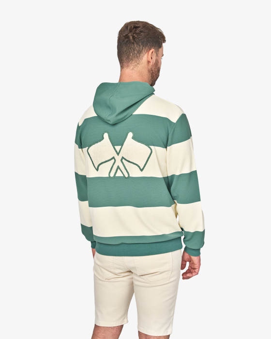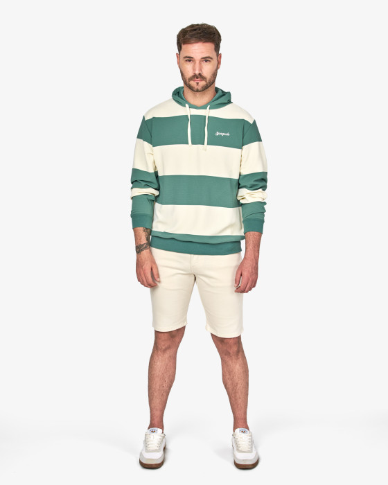 SUDADERA CAPUCHA RAYAS BEIG y VERDE